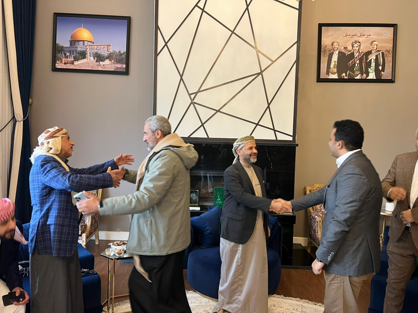 وخلال اللقاء تبادل الحاضرون الحديث حول الأوضاع الراهنة في اليمن، بالإضافة إلى مناقشة الاعتداءات المستمرة التي يتعرض لها الشعب الفلسطـ..ـني في قـ ـطاع غـ.ـزة، وإغلاق المسجد الأقصى مؤكدين على مسؤولية المجتمع الدولي في وضع حد لهذه الانتهاكات وإنهاء الجرائم المرتكبة بحق المدنيين.